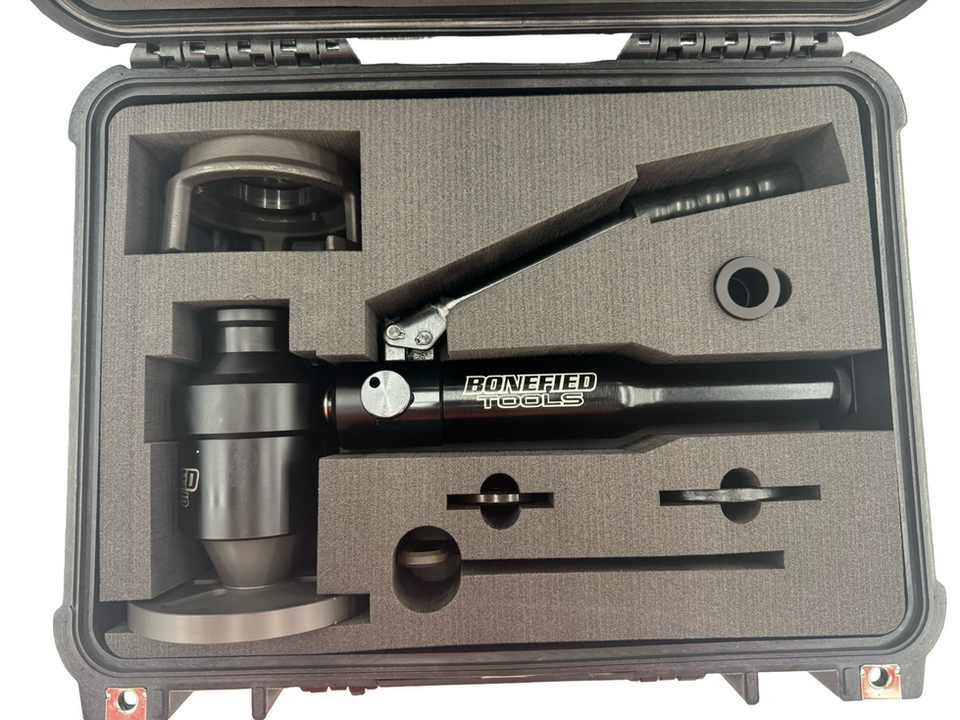 This hand-operated hydraulic pump effortlessly removes the harmonic balancer and just as smoothly and effortlessly installs it. So, whether you’re making changes to the timing assembly, changing a crank seal or switching out cams on the dyno you’ll be amazed at the speed and accuracy of this tool. It’s truly a game changer!